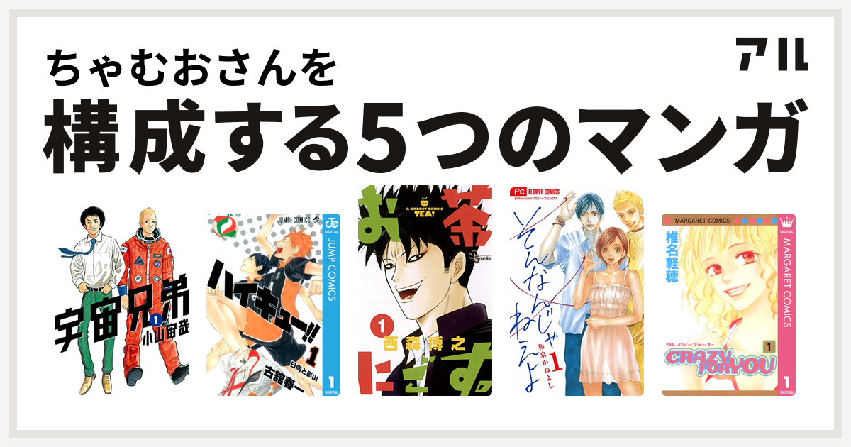 ちゃむおさんを構成するマンガは宇宙兄弟 ハイキュー お茶にごす そんなんじゃねえよ Crazy For You 私を構成する5つのマンガ アル